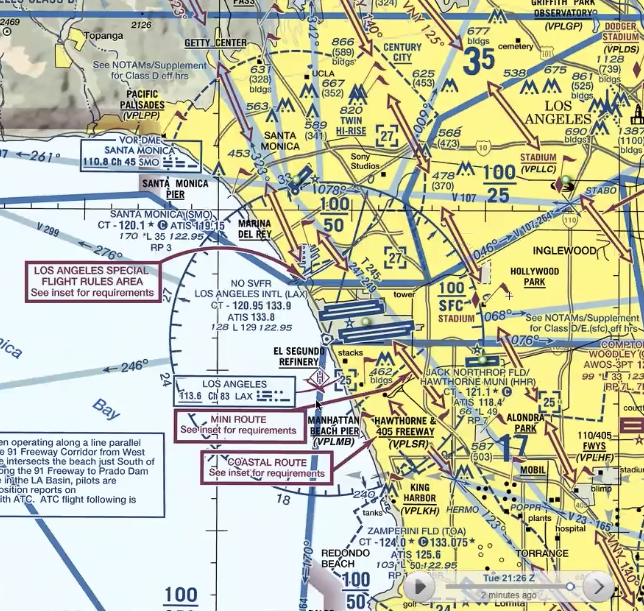 - Pilots must have a current LA Terminal Area Chart in the plane. (The complete SFRA rules are on the back.)