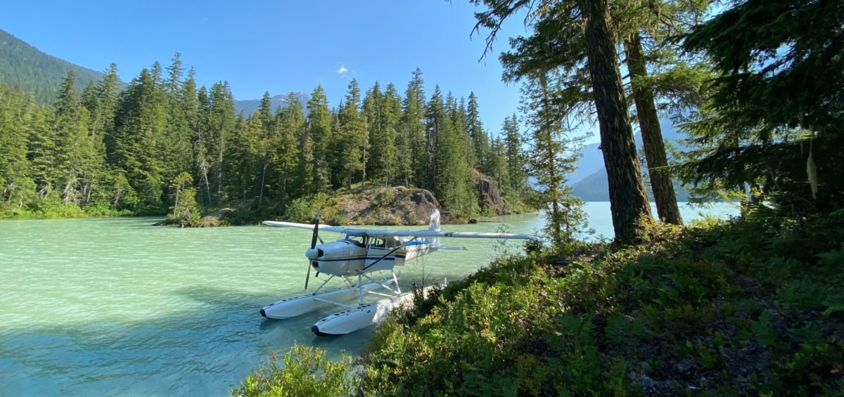 Alexis values the practice because “These landings require judgment, and they use all your skills as a pilot.” There’s a lot to think about: “On the first, high pass over the site, you check wind direction and look for any obstructions. If there’s no airstrip, there won’t be windsocks, so you have to watch tree branches, the direction of smoke blowing, or waves and ripples on water to gauge the wind direction. Then, on the low pass, you time to see if there’s enough length to land and to take off again. You see what kind of surface there is, and you figure out the best spot to put the tires down. Finally, you make a normal circuit and land. (At the golf course, they’ll pick you up in a golf cart and take you to the clubhouse for lunch, so that’s fun!)” One of her other favorite flight destinations is Tsuniah Lake Lodge, north of Squamish, B.C. “It’s beautiful, peaceful, totally off the grid, and you can camp under your wing.”