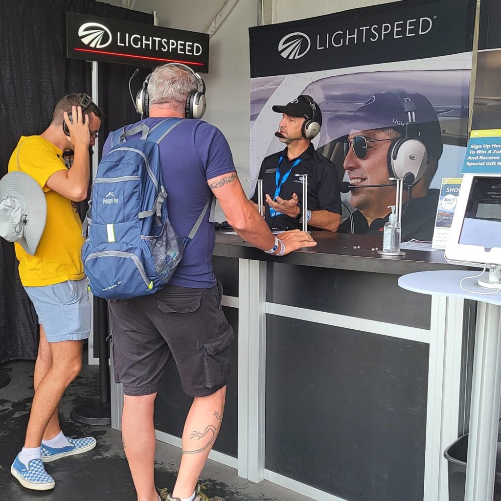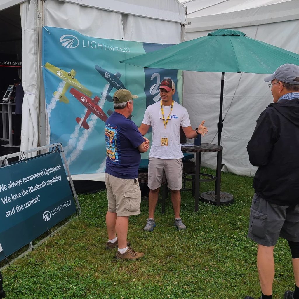 Lightspeed Employees: We had 10 Lightspeed Employees from various departments at AirVenture 2021 to serve our customers with headset demonstrations – our Wear to Compare campaign.