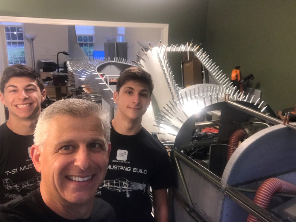 Today, SocialFlight is Jeff’s full-time job, and he is passing his love of aviation on to his two sons, Jake and Ben. Both boys have become pilots, and Jake recently got his A&P license as well. And, of course, they are helping him to build that Titan T-51D Mustang in the living room.