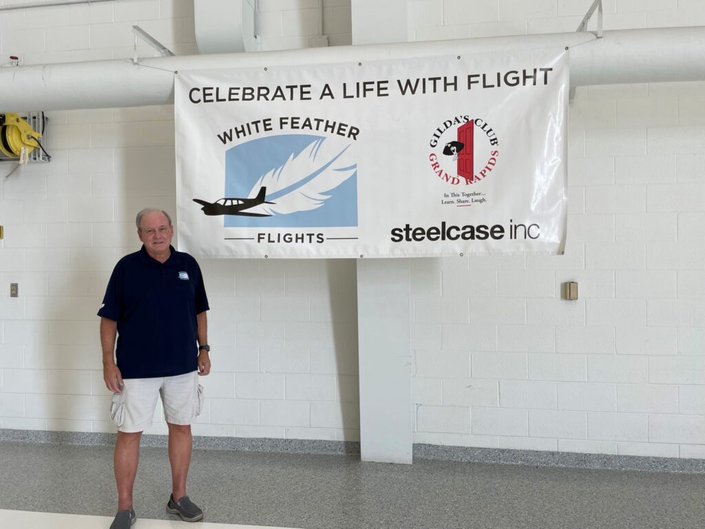 When he first got back into flying, Hesseman wasn’t aware of the option of “public benefit flying,” the Air Care Alliance (ACA) term for volunteer piloting. But he had a pilot friend who was paraplegic who ran an organization called Dreams and Wings, a non-profit that provides volunteer flights to inspire and empower kids with special needs and challenges. Hesseman and his wife supported the group’s events in Grand Rapids and around Michigan for years. One year, there was a Dreams and Wings event, hosted at the University of Michigan Cancer Center in Ann Arbor, that gave flights for kids affected by cancer. A couple approached a pilot who had given a flight to their little girl the year before, which she had loved. During the year, they had lost their daughter to cancer, and they asked if the pilot would give them a ride to remember that happy day with her. Hesseman says, “At the end of the day, the pilot took them up, and during the flight, the mother pulled out a big white feather with the girl’s name on it and asked if they could release it during the flight. Of course, the pilot said ‘Sure.’” During the next year’s Dreams and Wings event, 4 or 5 more families showed up asking if they could also have memorial flights. At that point, Hesseman and his friends recognized a need. The next year they organized a separate White Feather Flights event, and 30 families showed up to decorate feathers, remember their loved ones, and release white feathers from the air. Hesseman was also on the board of a cancer and grief support group called Gilda’s Club in Grand Rapids, so that group decided to organize a White Feather Flights event in Grand Rapids. A few years ago, they created the White Feather Flights website to help grief support organizations and pilots around the country coordinate flights for grieving families.