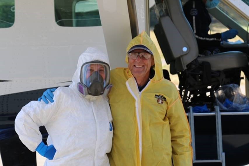 “There were a lot of firsts for me. Learning to fly with a mask, wearing PPE, removing PPE on the tarmac without contaminating myself, washing my hands constantly, waiting to hear from the hospital if the patient was COVID-positive before I could go home to my wife, learning hand signals from the medical personnel since they couldn’t talk thru their full masks. And now, finally, I’m hoping to get vaccinated soon.