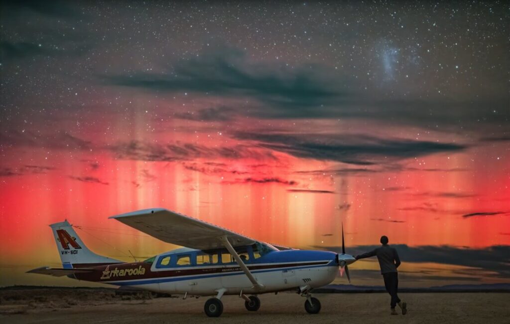 Doug Sprigg also learned his love of flying from his dad. He recalls sitting on his dad’s lap at age 4, as his dad did 3D photogrammetry mapping of South Australia in an Avro Anson, using a WWII surplus camera. Doug got his pilot’s license at 17, and besides flying for Arkaroola, he has done environmental survey flying for the South Australian government. He flew his dad’s first plane, a de Havilland DH.84 Dragon with plywood box fuselage, followed by a succession of Cessnas. Arkaroola’s current fleet includes a Cessna 207, a Cessna 172, a Vans RV6A home-built experimental aircraft (which he notes is “less noisy inside since being fitted with a cloth interior”), and an antique Aster J1/N high-wing 4-seater. Besides his many other skills—flying, leading astronomical and other tours, wallaby wrangling, and being a spokesman for Arkaroola—Doug is a mechanic, keeping Arkaroola’s diesel generators, vehicles, and occasionally visitor’s cars in good working order.