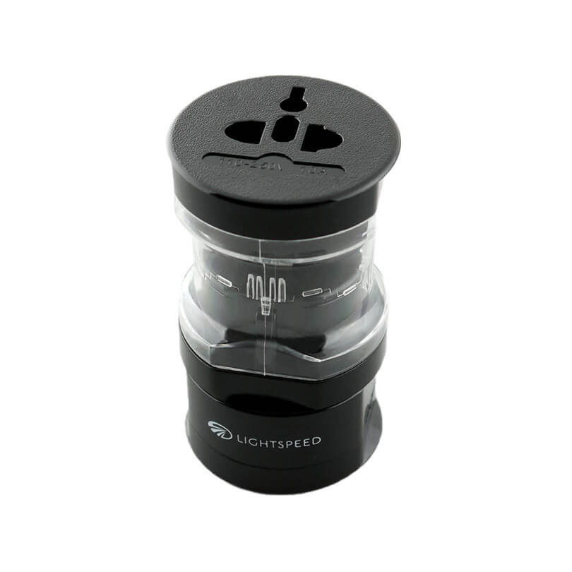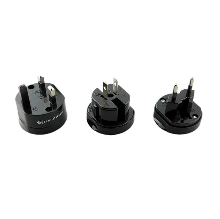 For use during international travel, our Universal Power Outlet Adapter comes with four regional plug adapters.